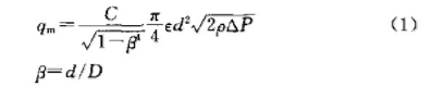 式中:qm為質量流量,kg/s;C為流出系數;D為管道內徑,m;ε為節流件正端取壓口平面上的氣體膨脹系數;d為工作條件下節流件的開孔直徑,m;ρ為節流件人口端流體密度,kg/m³.